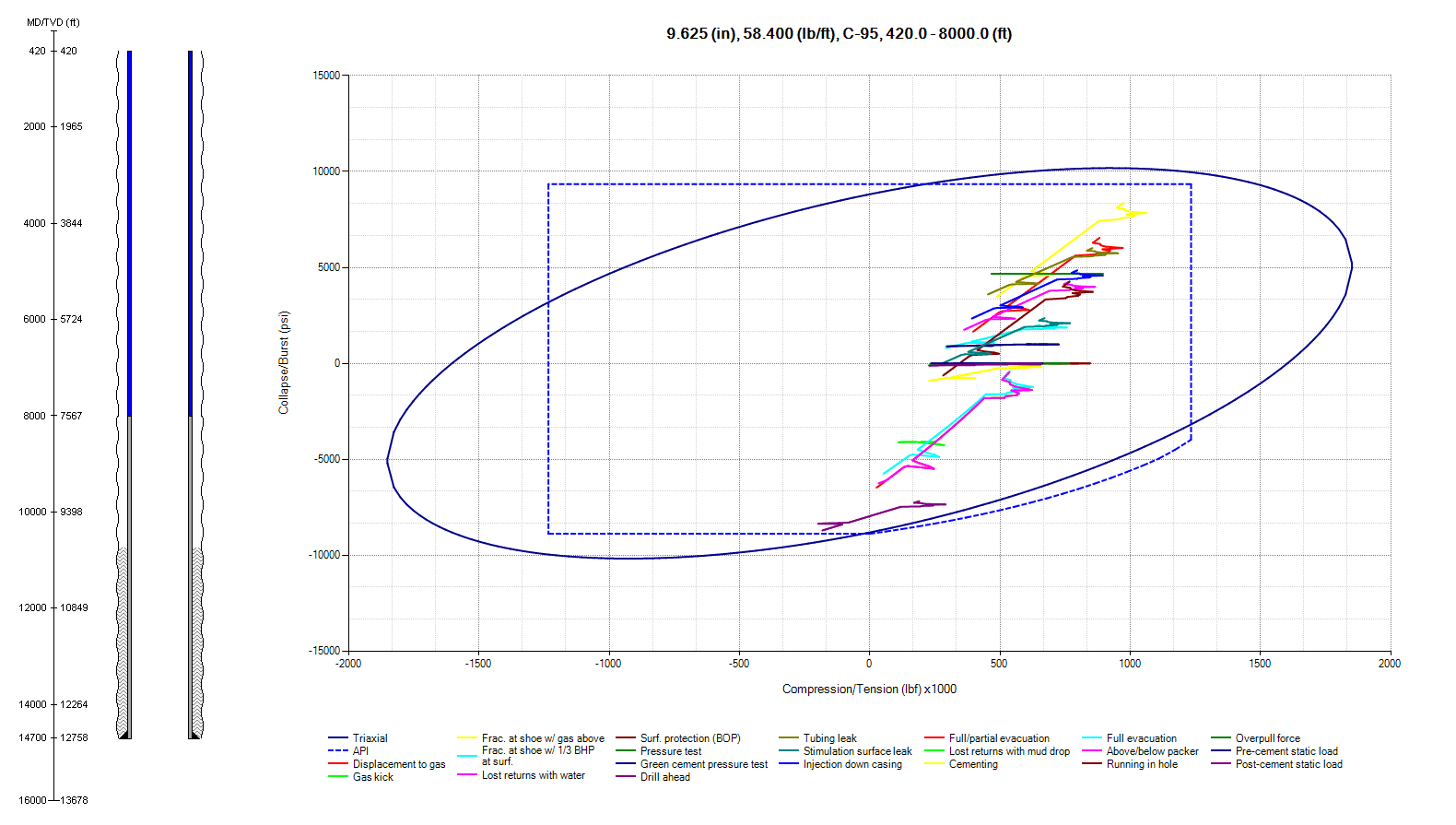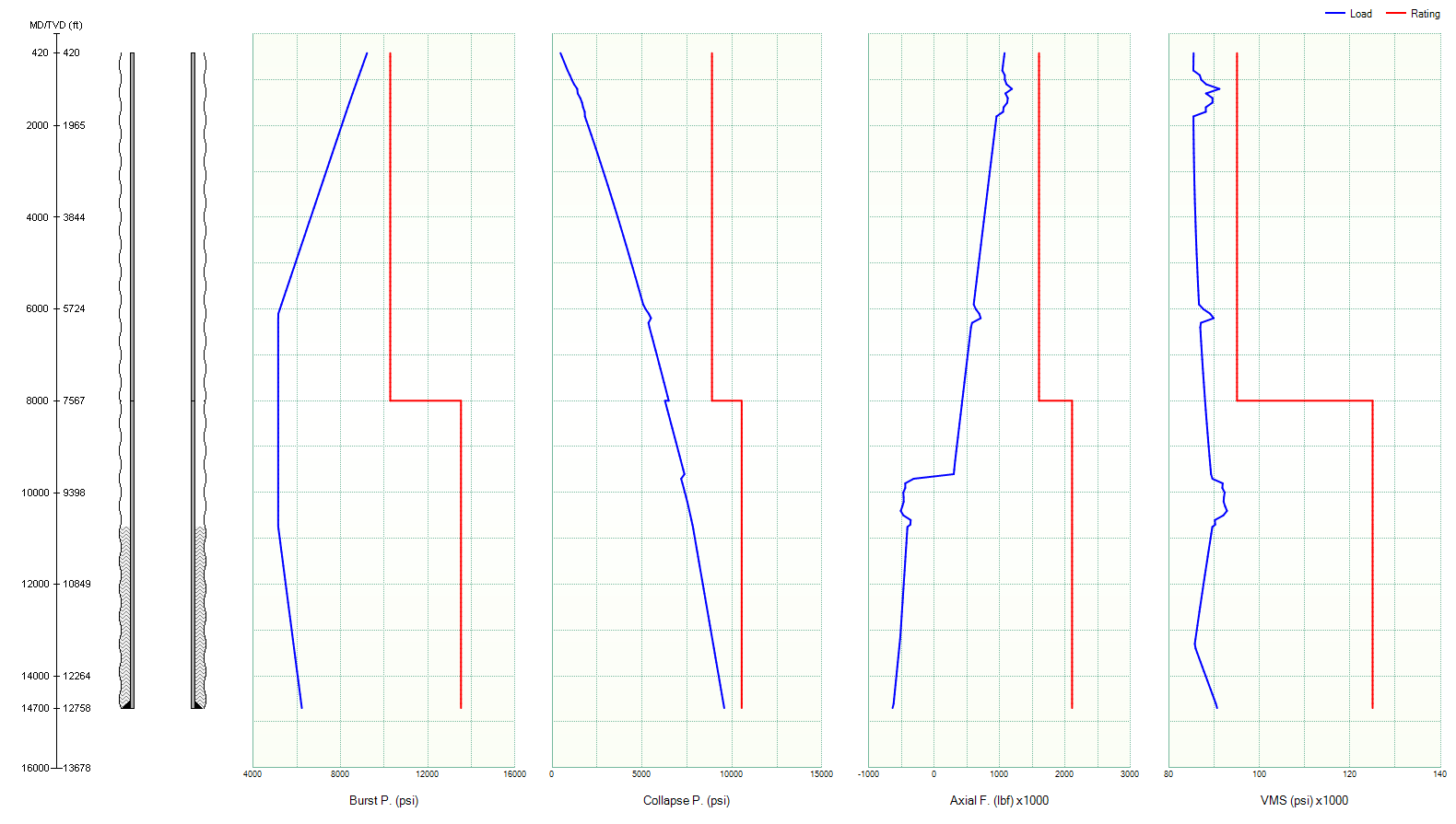 Burst, collapse, tension, compression, bending, buckling and temperature effects are all incorporated into CDEx to analyze the casing strings’ capabilities.