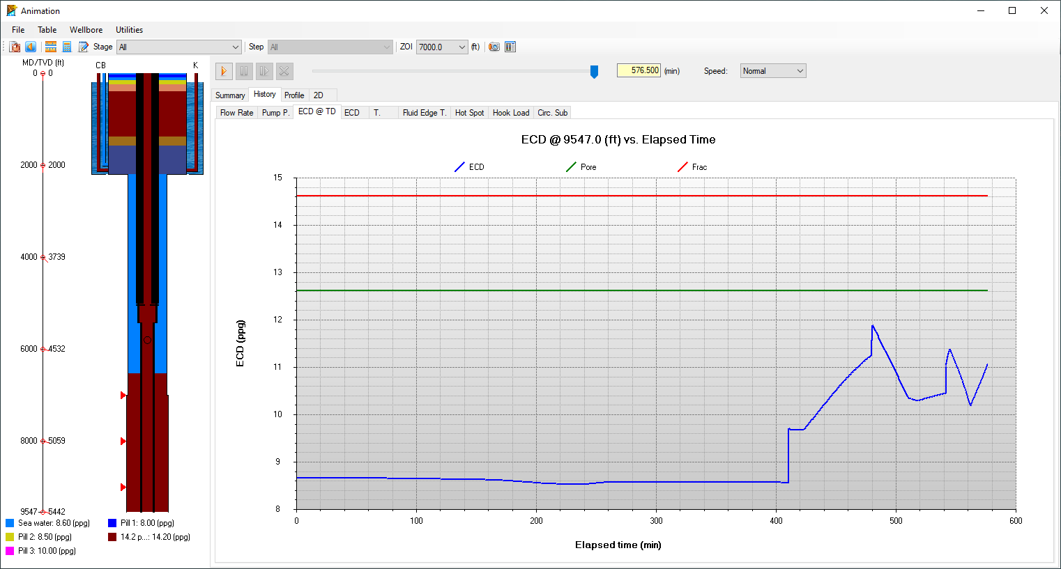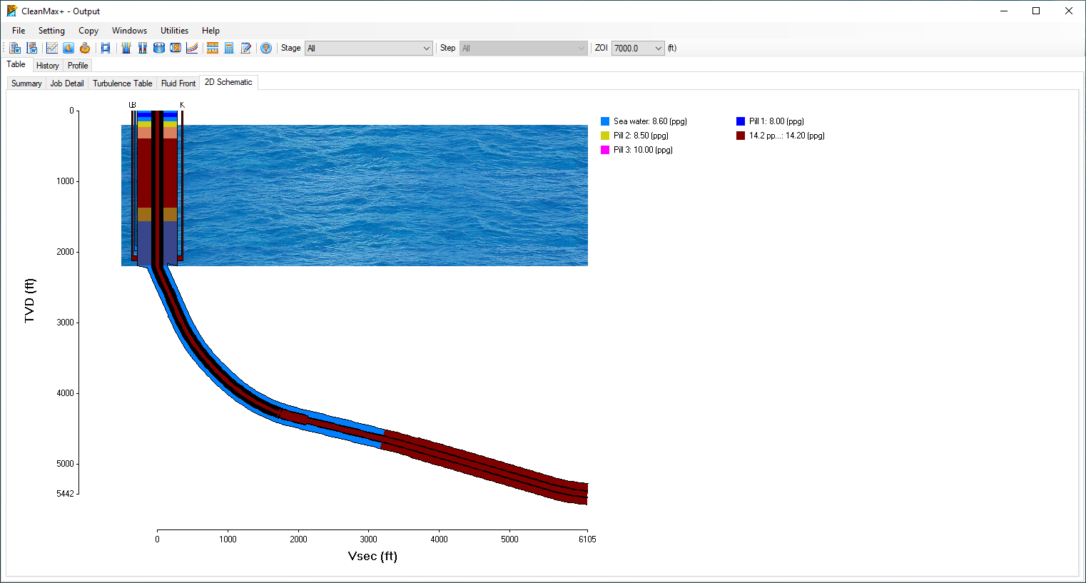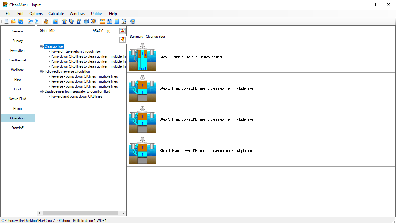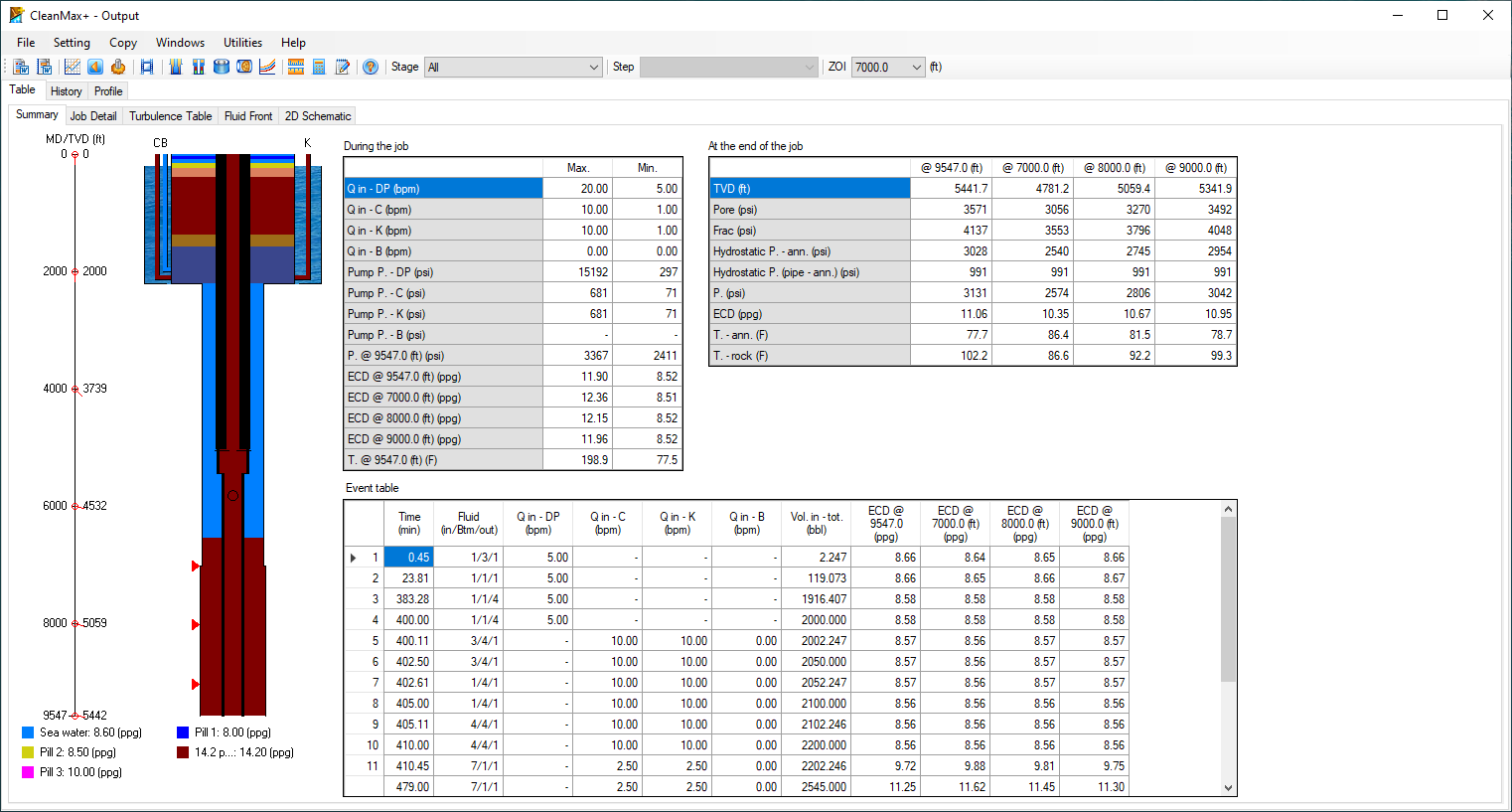 CleanMax+ is designed for deep water operations involving displacements using the choke, kill, and boost lines. CleanMax+ predicts the temperature distributions in the wellbore by calculating the transient heat transfer between wellbore and sea water/rock formation. It can simulate temperature and pressure dependent density and rheology properties of fluids, commonly associated with HTHP environments.