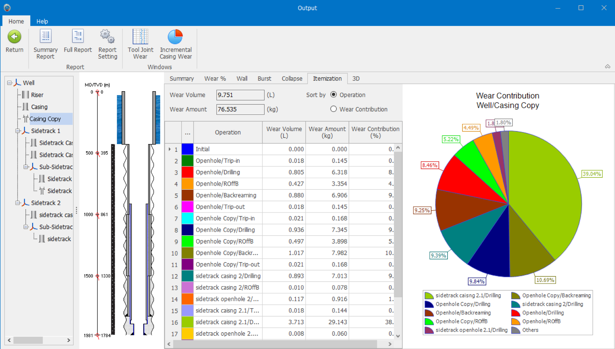 CWPRO is integrated with multi-well sections, multi-operations, cumulated casing wear results and tool joint wear models. As a result of extensive research from experimental and theoretical perspective, CWPRO is developed to better understand the casing wear process, predict the location and magnitude of casing wear and give constructive suggestions.