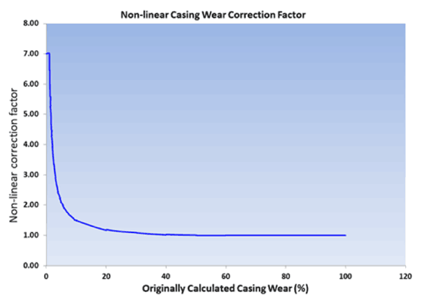 If the casing wear result is small (less 5%), it is suggested to apply the non-liner correction. The illustration of this non-linear correction factor is shown below.
