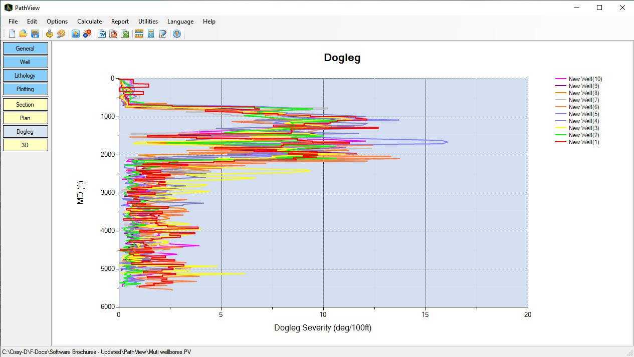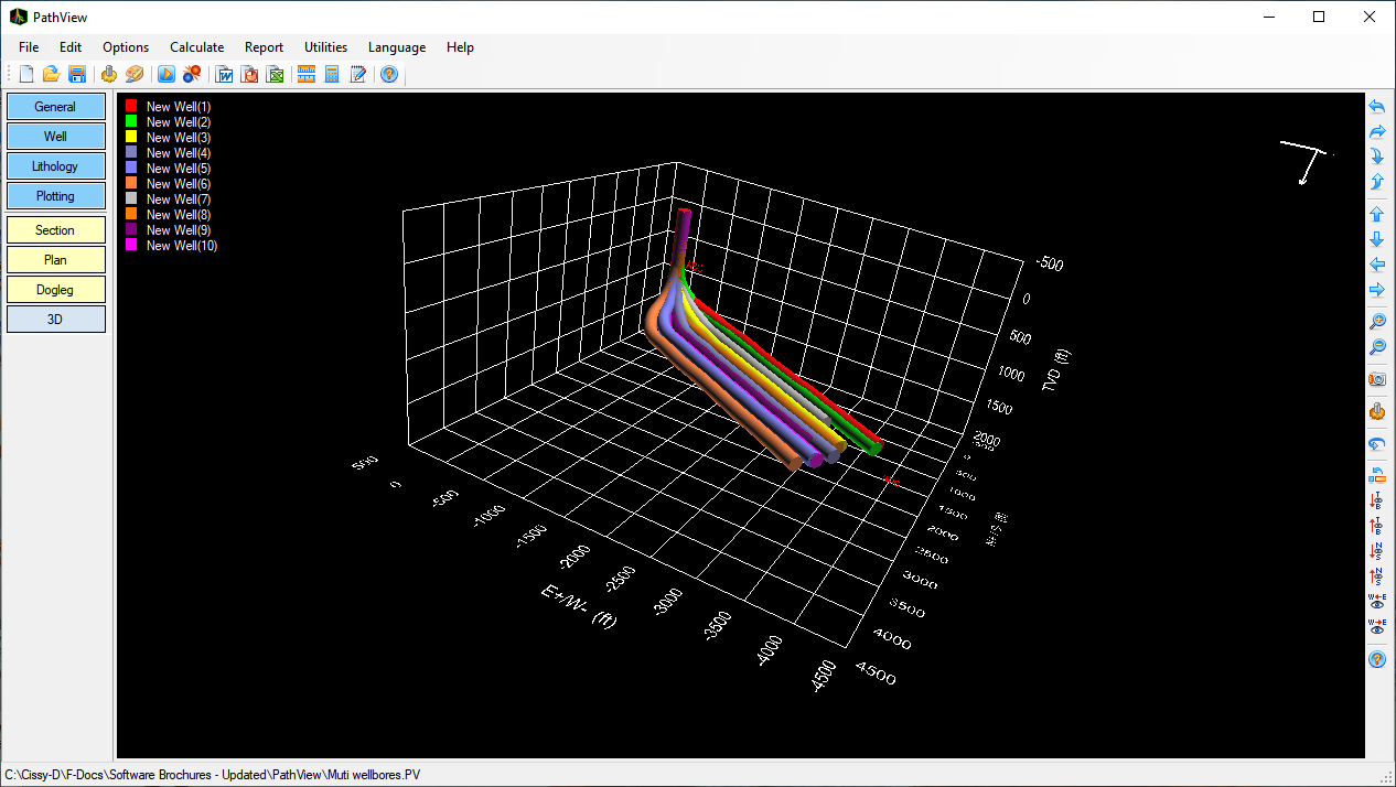Three-dimensional visualization of a wellbore trajectory is challenging, especially for multiple and multi-lateral wells. Calculating true vertical depth (TVD), dogleg severities, and the ability to see the well path in a 3D work space is important to avoid unforeseeable issues. These features help engineers visualize the development plan, avoid well collisions and effectively present the plan to others.
