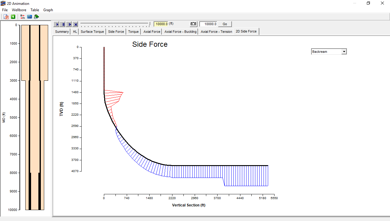 T&D software calculates in small segments and cumulatively sums the results, beginning at the bottom of the string and working up to the surface. Choosing the ‘calculate on survey points’ option will set the segment length to the distance between survey points, as reflected in the survey. Surveys with a 100 ft interval for a 15,000 ft well would result in 150 separate sections over which torsional and axial forces are determined.